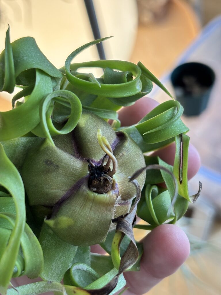 基本的には、ティランジアの多くは自家受粉しずらいという性質があるので1種類単体で管理していると「種」は出来ない事が多いです。