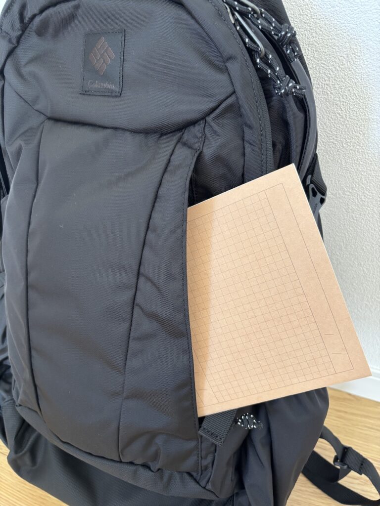 試しに無印のA5のノートはギリギリ入るくらいの容量です。