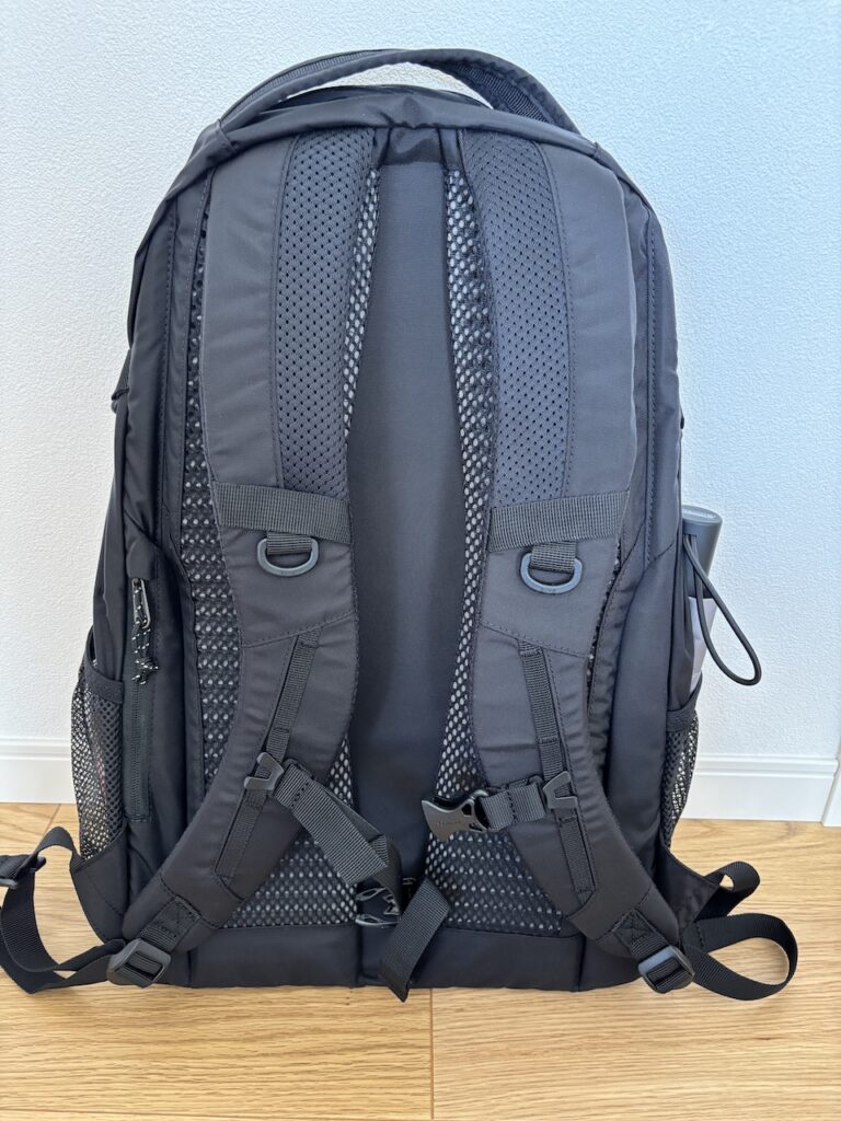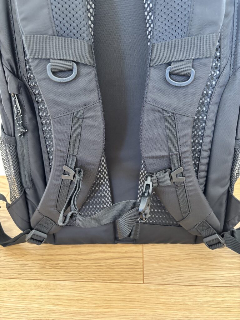 こちらのリュック、実勢価格アンダー10000円のバックパックなのですが、背面に「WavePad」を完備しており、取り外し・上下への移動可能なチェストストラップ
