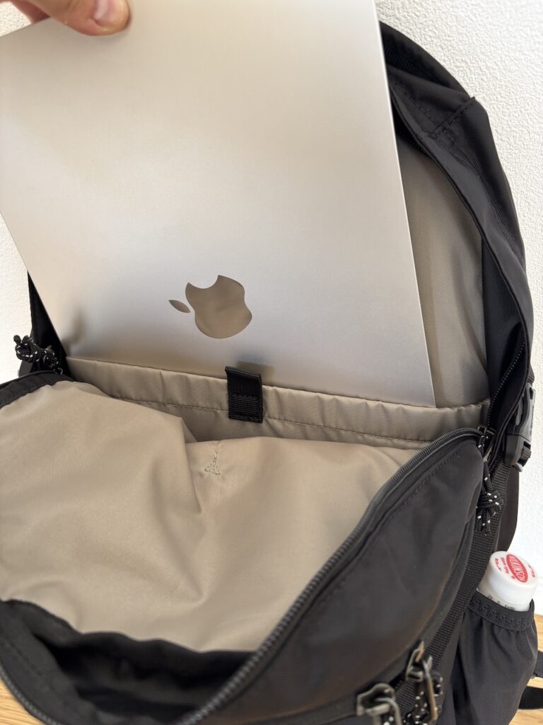MacBook AirなどノートPCもしっかり収納できます。