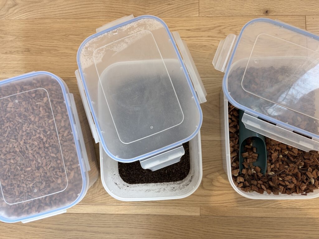 上記の肥料などは元の袋で使おうとすると不便なので個人的に移し替え推奨です。