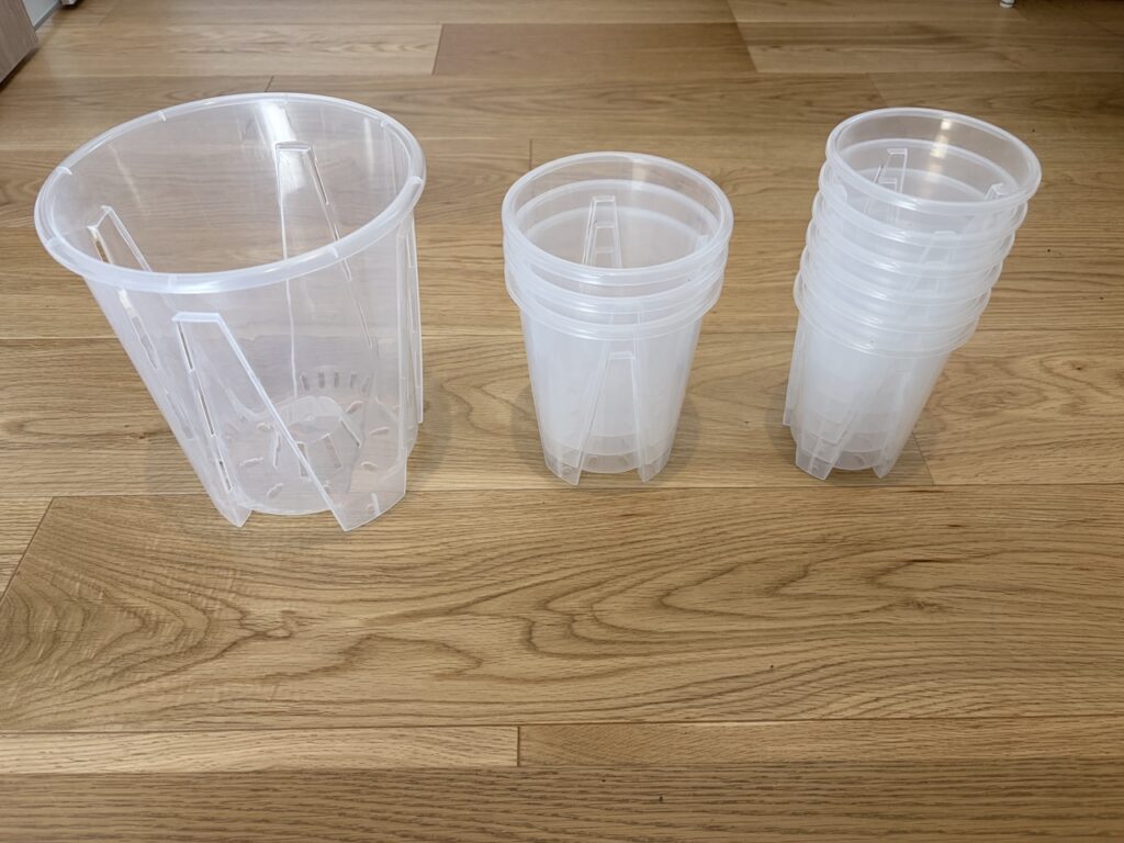 一般的かは分かりませんが、「透明ラン鉢」「オーキッドポット」などと言って元々は「蘭」の栽培に使われていたものが「根っこが見える」、モスグリーンやブラックと違って見慣れないから「非日常感」があるからオシャレだね、とSNS中心に流行っている鉢になります。