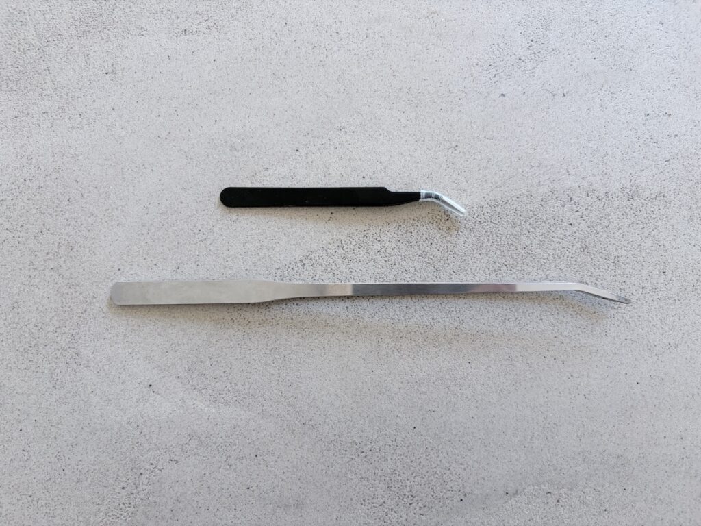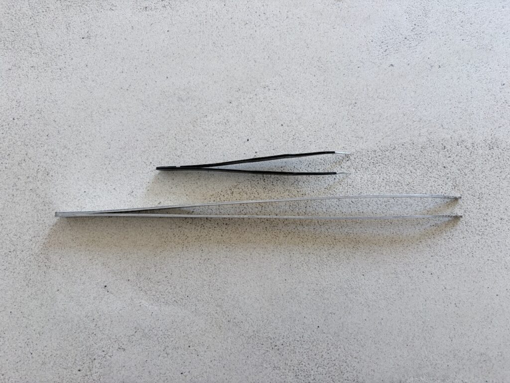 こちらもTHE・シンプルなピンセットですが、短いタイプと長めのタイプ1つずつ用意するのがおすすめです。