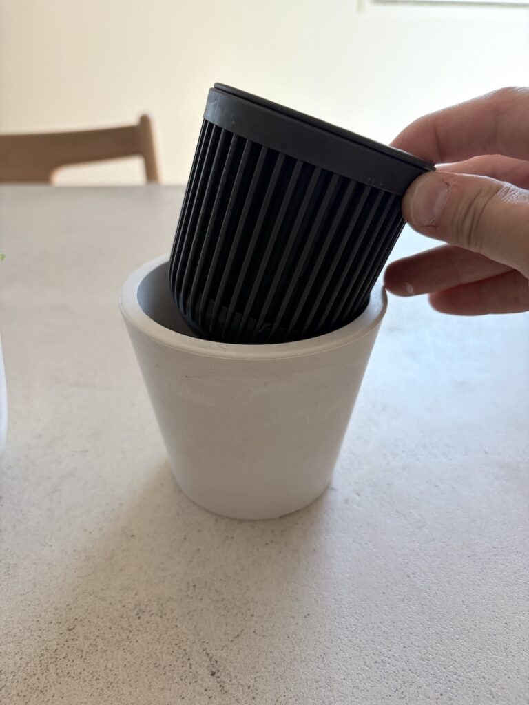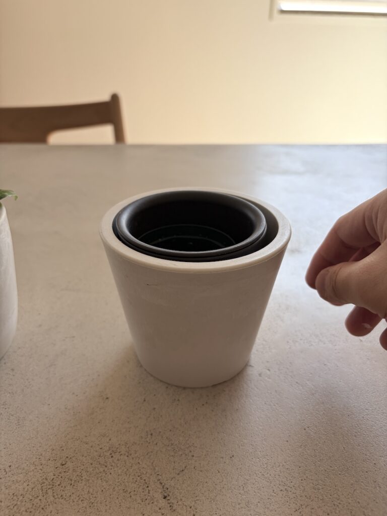 こちらは、ポリプロピレン✕ストーンパウダーの少し無機質っぽい見た目のオシャレプランターです。