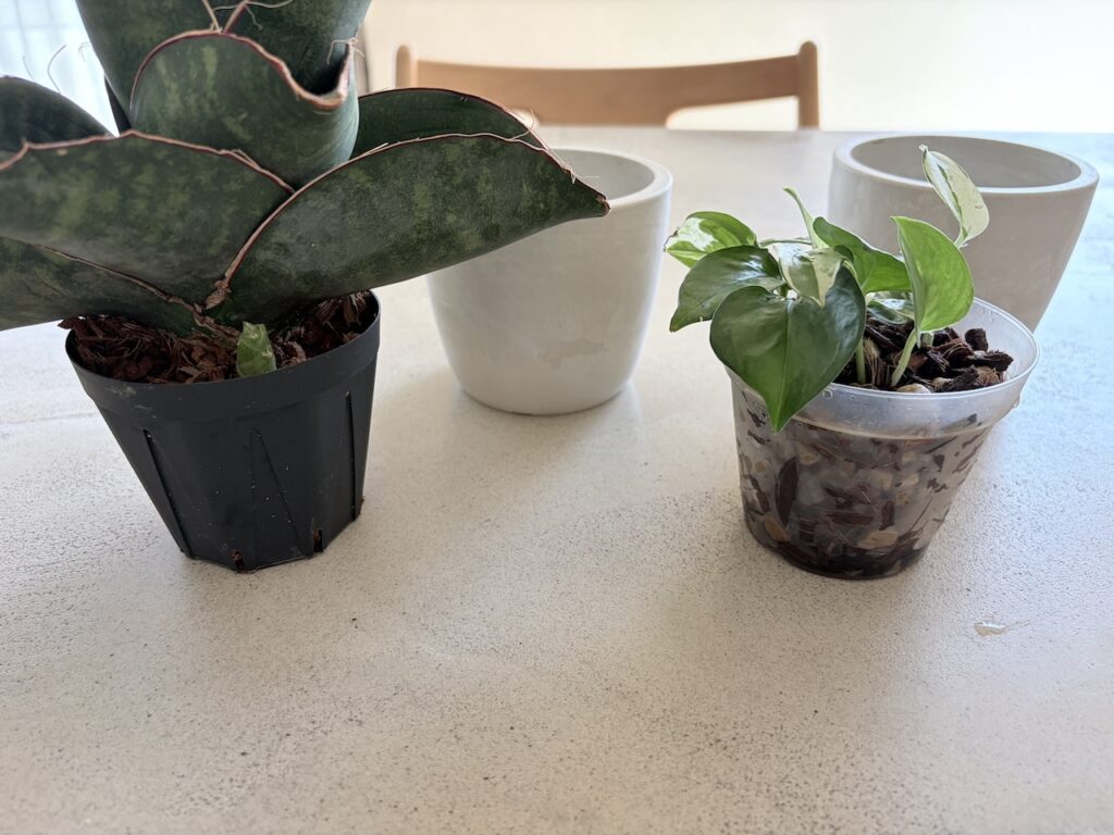 Seriaに行けば鉢カバーとクリアポットを同時購入可能です。3号〜3.5号程度の植物におすすめです。