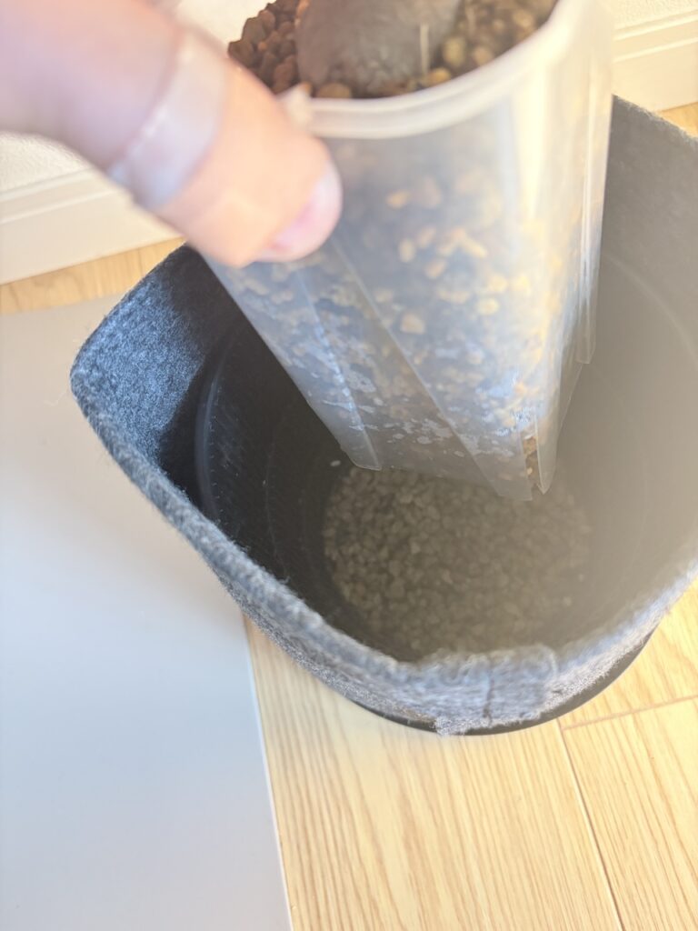 1cm程度水いれて、軽石ベッドにポン!
